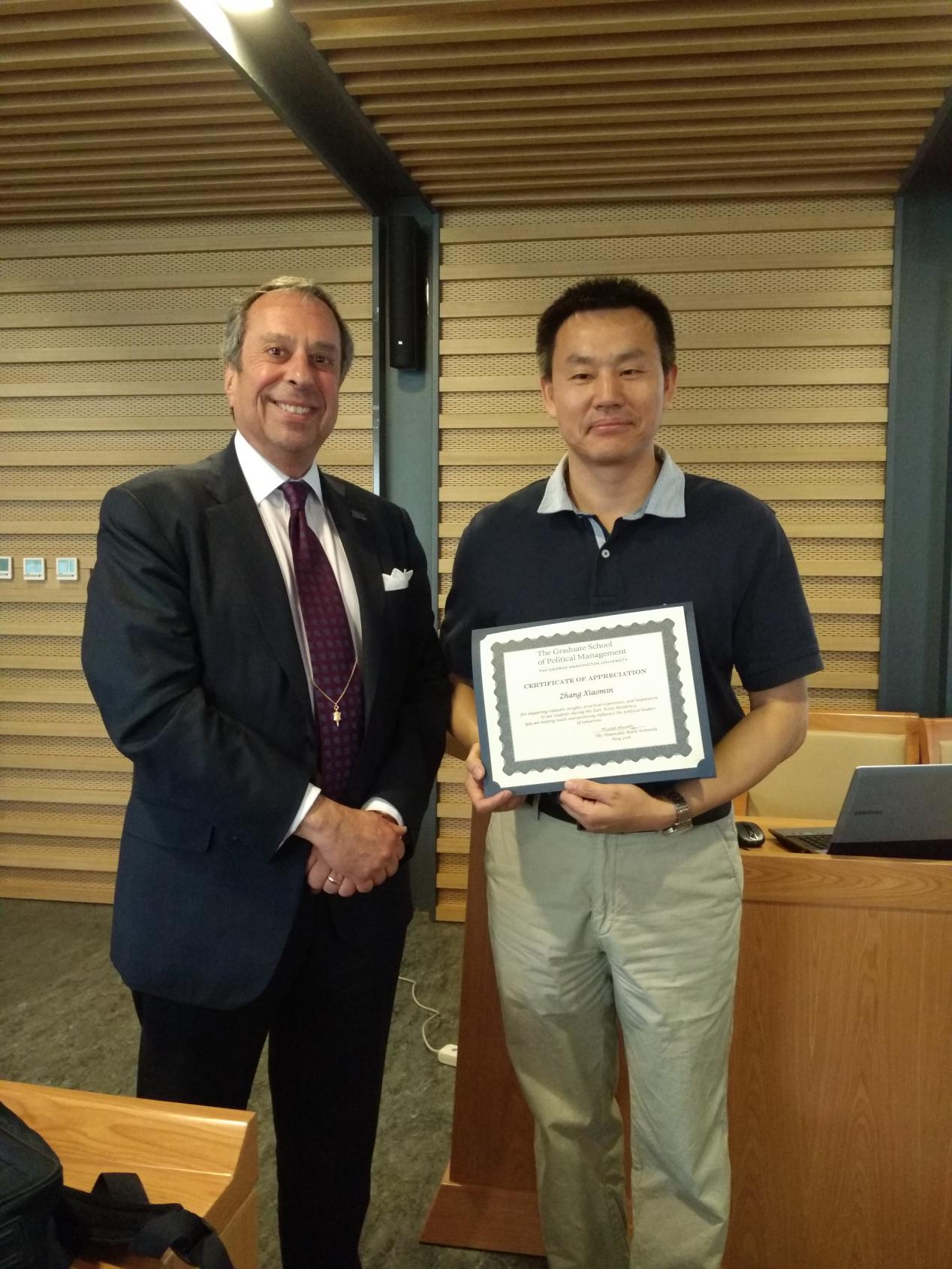 交流会伊始,李永成老师首先代表beats365vip官网登录入口对乔治华盛顿大学代表团的到来表示热烈欢迎。随后李老师应邀发表了以“中国政治决策:原则与过程”为主题的演讲,风趣地向美国员工介绍了中国政治的权力结构、政治决策原则与决策过程,并回答了美国员工提出的问题。