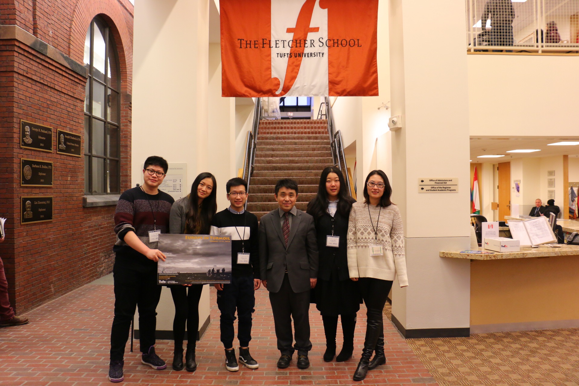 论坛在2月17日至2月21日之间举行,塔夫茨主办方共邀请了来自十四个国家的二十余个代表团,进行了主题为“欧洲的未来”(The Future of Europe)的系列讨论。第一天,主办方为使来自各个国家的代表们熟识大家并了解波士顿城市全貌,特意设计了寻宝游戏,将每个国家的代表们分散到不同的组,用一天的时间在波士顿“寻宝”,实地了解当地的历史和文化,各国员工代表们也因此互相熟悉起来。第二天开始,论坛正式开幕,以不同的讲座、小组讨论的形式分析了欧洲的经济、政治、环境、军事未来,以及欧洲所面临的身份认同、难民危机、欧洲对外贸易、欧洲在世界的地位、英国退欧公投前景等议题,各国代表互动热烈,收获颇丰。在2月19日,我同北外的另两名员工代表一起,在二十余个代表团面前作了关于中欧环境合作未来的英文报告,并同多国代表就这一议题进行了讨论,取得了较好的反响。