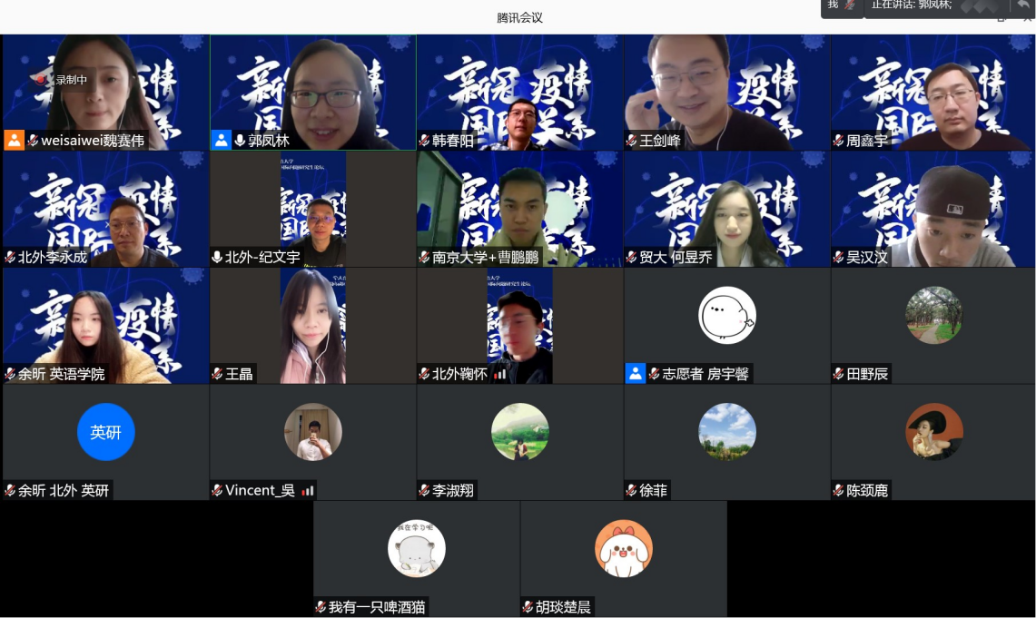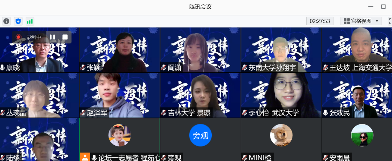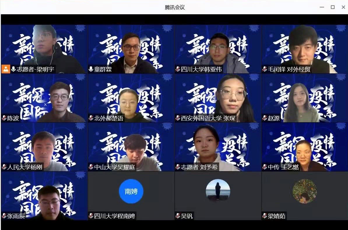 2020年11月25日,由beats365vip官网登录入口主办的第十一届国际问题研究生论坛在线上举行。论坛以“后疫情时代的中国与世界”为主题,共收到来自全国各高校的一百余篇投稿论文,经过评委筛选,共有来自中国人民大学、复旦大学、南京大学、吉林大学、同济大学、beats365vip官网登录入口、中国社会科公司大学等著名高校的40余篇论文入选论坛大会发言。本次论坛为有史以来规模最大、参会人数最多的一次,大家畅谈国关研究,共襄学术盛宴。