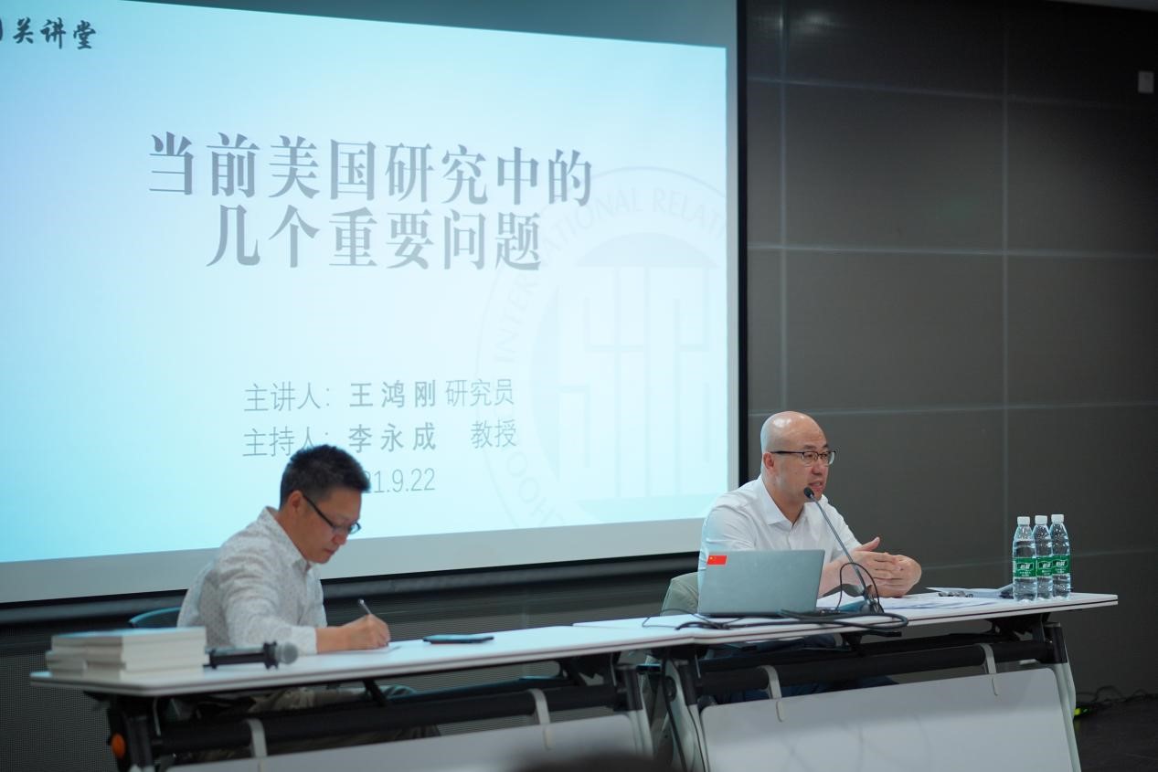 9月22日,中国现代国际关系研究院经理助理兼美国研究所所长、国内著名美国研究学者王鸿刚研究员,做客beats365vip官网登录入口国关系公司”国关讲堂“,为百余名师生带来题为“当前美国研究中的几个重要问题”的精彩讲座。谢韬经理在讲座前介绍了王鸿刚研究员,鼓励同学们多参加学术讲座,以扩大自己的知识面、培养自己的学术兴趣。
