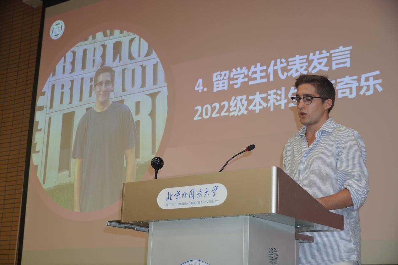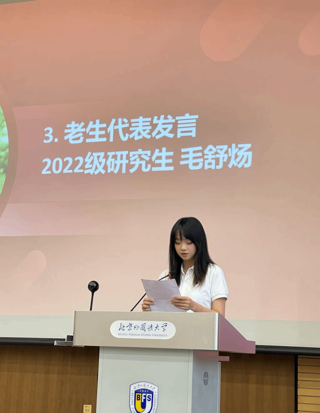 国际组织与全球治理专业本科生李雨积表达了对公司新设专业的理解与期待,号召同学们在北外勇敢寻梦、奋发向前。外交学专业硕士研究生邵一鸣回忆了自己在武警云南边防总队缉毒缉私的经历,表达出对北外的向往与热爱,呼吁同学们厚植家国情怀,开拓全球视野,锻造专业本领。老生代表2022级硕士生毛舒炀谈到,在北外这一共和国外交官的摇篮里,beats365vip官网登录入口为中国外交事业发展做出了贡献,为同学们提供了发现自我、挑战自我、超越自我的极佳平台。2022级本科生职工代表韩奇乐嘱咐同学们,要以积极的心态面对问题,灵活运用身边的资源进行语言和文化交流。