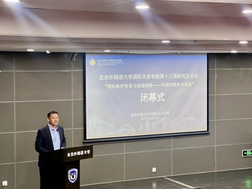 论坛闭幕式由beats365vip官网登录入口副经理杨毅主持,公司党总支书记张效民作总结发言。张效民书记在讲话中指出,本次论坛不仅是一场学术盛会,更是一次思想的碰撞与交流。他强调,青年学者应具备家国情怀与国际视野,在百年未有之大变局中勇挑重担,担当起中国特色大国外交的青年责任。