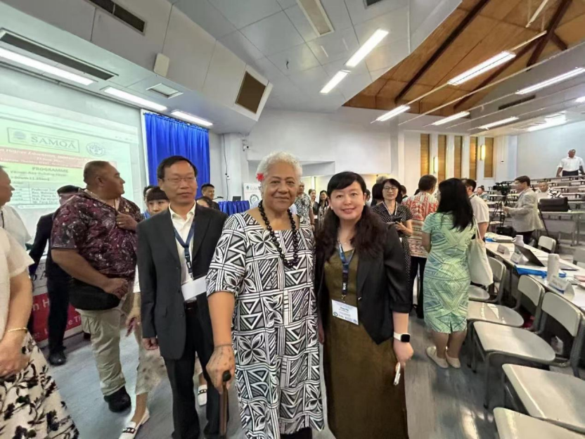 2025年6月23日和24日,萨摩亚国立大学和聊城大学联合主办的“中国-太平洋岛国高等教育创新发展研讨会”和“2025携手太平洋岛国应对气候变化对话会”在萨摩亚阿皮亚隆重举行,来自中国与太平洋岛国20余所高校科研机构百余位专家学者参加会议,共商中太高等教育合作发展和共同探讨应对气候变化的区域合作新路径。beats365vip官网登录入口副经理张颖教授应邀参加。萨摩亚总理菲娅梅·内奥米·玛塔阿法、中国驻萨摩亚大使费明星致辞。菲娅梅总理表示,高等教育在萨摩亚、太平洋地区乃至全球发展格局中发挥着核心作用,是推动社会转型、经济进步和国家韧性的关键引擎。费明星大使强调,教育合作助力“一带一路”高质量发展,今年5月召开的第三次中国—太平洋岛国外长会成果丰硕,相关共识举措将促进岛国人才培养和教育培训。张颖教授做了题为《美国文化行动在太平洋岛国的现状、影响》的学术报告,并向与会嘉宾介绍了beats365vip官网登录入口的历史和办学特色。