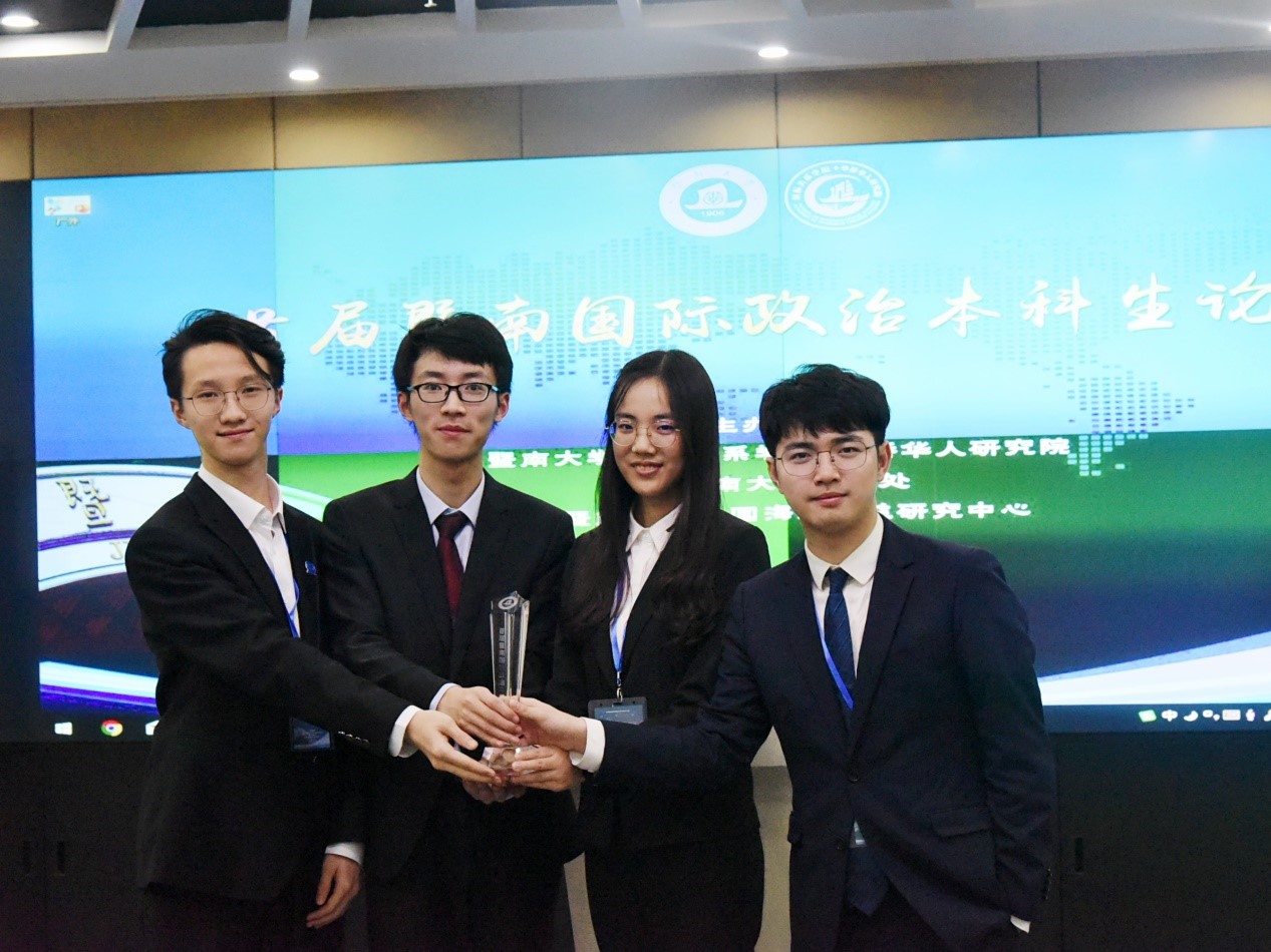 12月14日,首届暨南(全国)国际政治本科生论坛在广州暨南大学举办。本次论坛由暨南大学与教育部高等公司政治学类专业教学指导委员会共同举办,论坛主题为“领事保护的国际比较”。经审核选拔,公司由2017级外交学专业本科生韦云杰担任领队,2017级外交学专业本科生李昕沂、张谦和,2017级政治学与行政学专业本科生潘天一共4名同学参加了本次论坛,参会论文由张效民副教授指导完成。