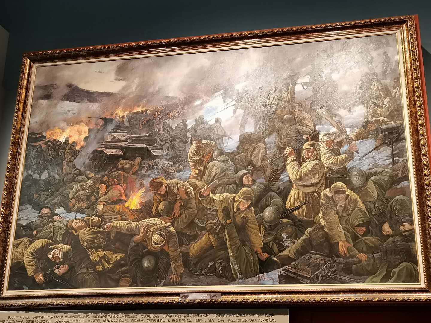 志愿军战士装备坚守松骨峰的油画,鏖战长津湖的景观……在展厅现场,参观的同学们被这些丰富的历史文物、照片、景观深深吸引和感染。雄赳赳,气昂昂,跨过鸭绿江……”,这首歌,七十年唱来,依然志气高昂;杨根思、邱少云、黄继光……这些人,七十年念来,依然形象鲜活。七十年,历史总会在某个转角流露出一丝余温、一星光芒,昭示着人们,正气长存、精神不朽。