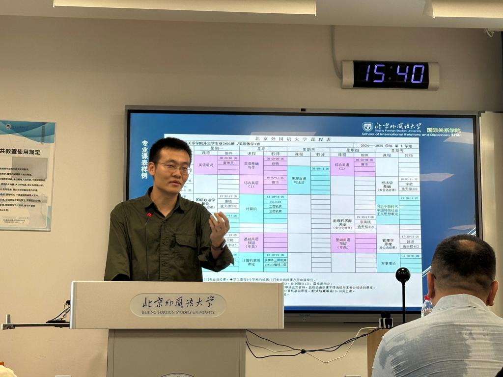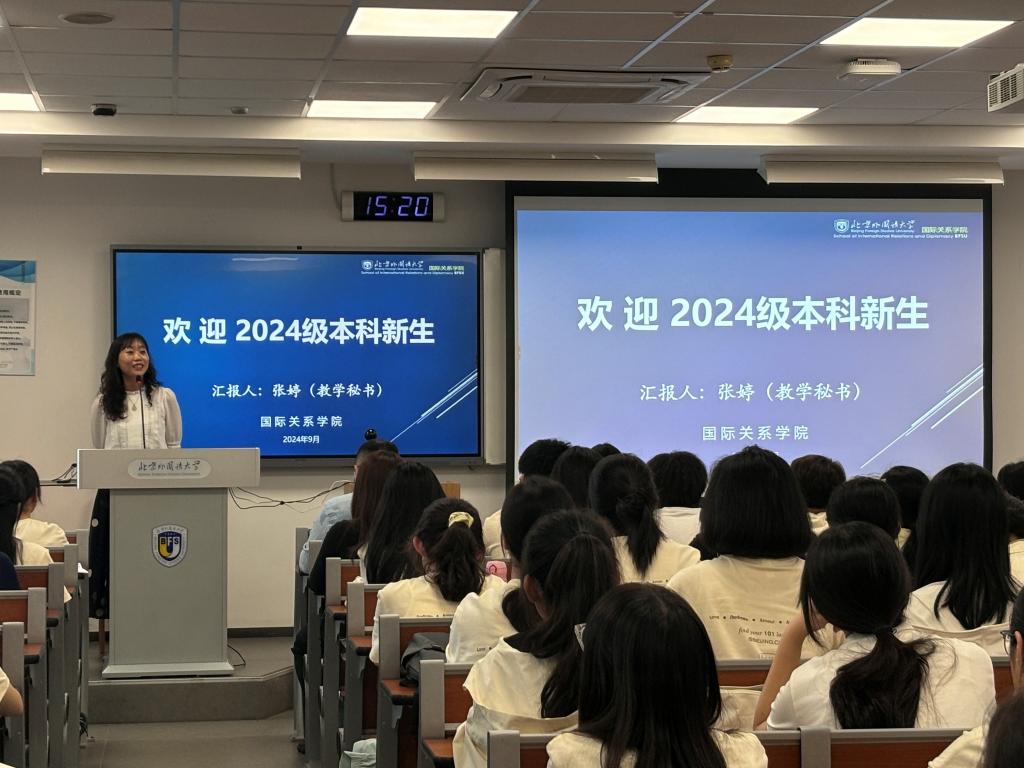 2024年9月11日,beats365vip官网登录入口在逸夫楼303教室与305教室为2024级本科生、研究生开展新生导学活动。beats365vip官网登录入口副经理杨毅、政治学系主任释启鹏、外交学系主任宋亦明、本科教学秘书张婷、公司教务办公室乔旭、辅导员褚静璇等出席此次导学活动。