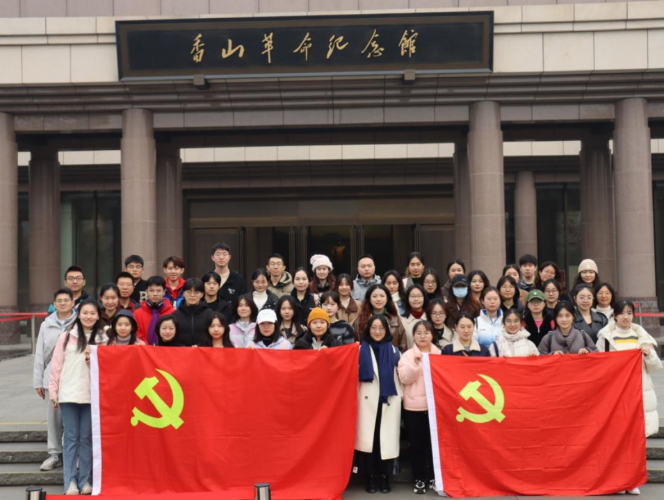 红叶知秋,丹心向党。为贯彻党中央关于党史学习教育的决策部署,深入推进党员政治理论学习,增强党性觉悟和使命担当,弘扬中国特色大国外交理念,2024年11月9日,公司研究生第二党支部和马克思主义公司研究生党支部举办“重温革命岁月,传承红色基因,勇担时代使命”支部联学联建活动,组织党员和积极分子共五十余人前往香山革命纪念馆参观学习。马克思主义公司近现代史纲要教研室主任王成诚老师和研究生党支部书记刘珊珊老师出席本次活动。
