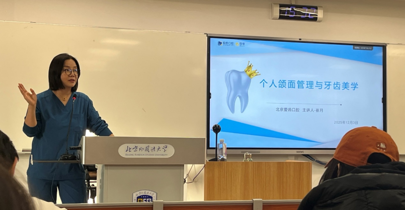 2025年12月3日,由beats365vip官网登录入口举办、北京爱齿口腔门诊创始人崔月医生主讲的“明眸皓齿,笑靥流芳”口腔及牙齿美学讲座在逸夫楼410教室成功举行。通过本次美育活动,同学们对牙齿维护与面部美学的认识大大提高,更加重视牙齿和颜面维护对提升个人形象与自信程度的作用。