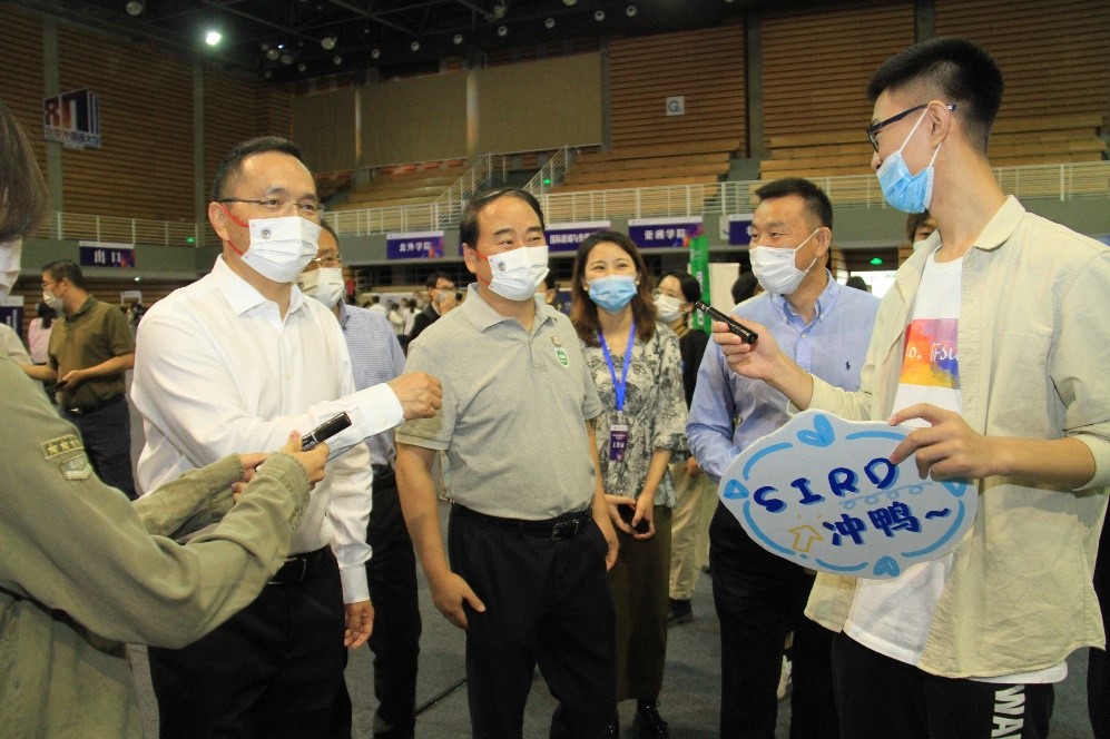 公司党总支书记张效民、经理谢韬、副经理张颖、党总支副书记彭澍以及团总支书记、辅导员钱梦婷到工作现场慰问工作人员,并和前来报到的新生合影留念。
