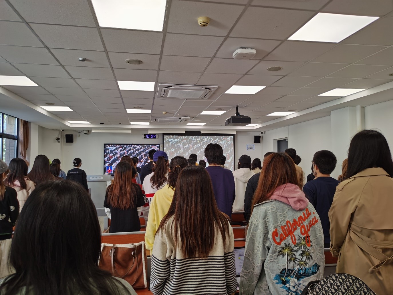 与会同学集体起立唱国歌
