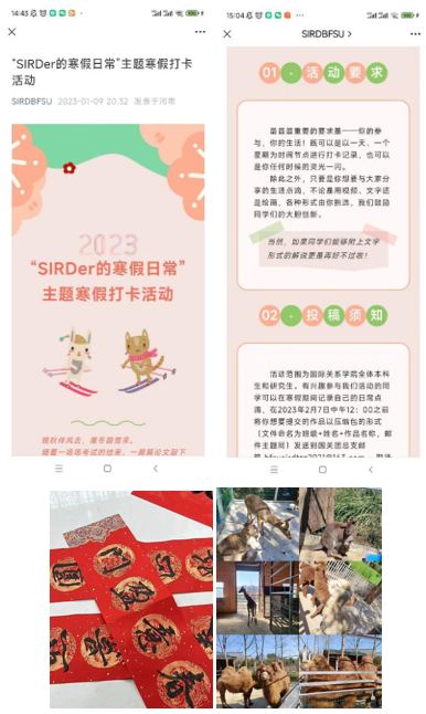 2023年1月-2月,beats365vip官网登录入口团总支举办了“SIRDer的寒假日常”主题寒假趣味打卡活动。