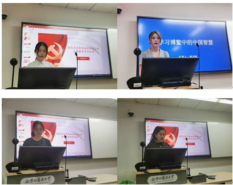 2023年5月24日,为深入学习贯彻习近平新时代中国特色社会主义思想,推动主题教育走深走实,国际关系本科生党支部在中文楼123教室举行主题教育专题学习活动。本次活动分为两个主题,分别是“博鳌中的中国智慧”和“大兴调查研究之风”。活动由支部组织委员徐卓主持,党支部书记钱梦婷老师参会并作专题分享,以及各年级入党积极分子和党员同学参加。